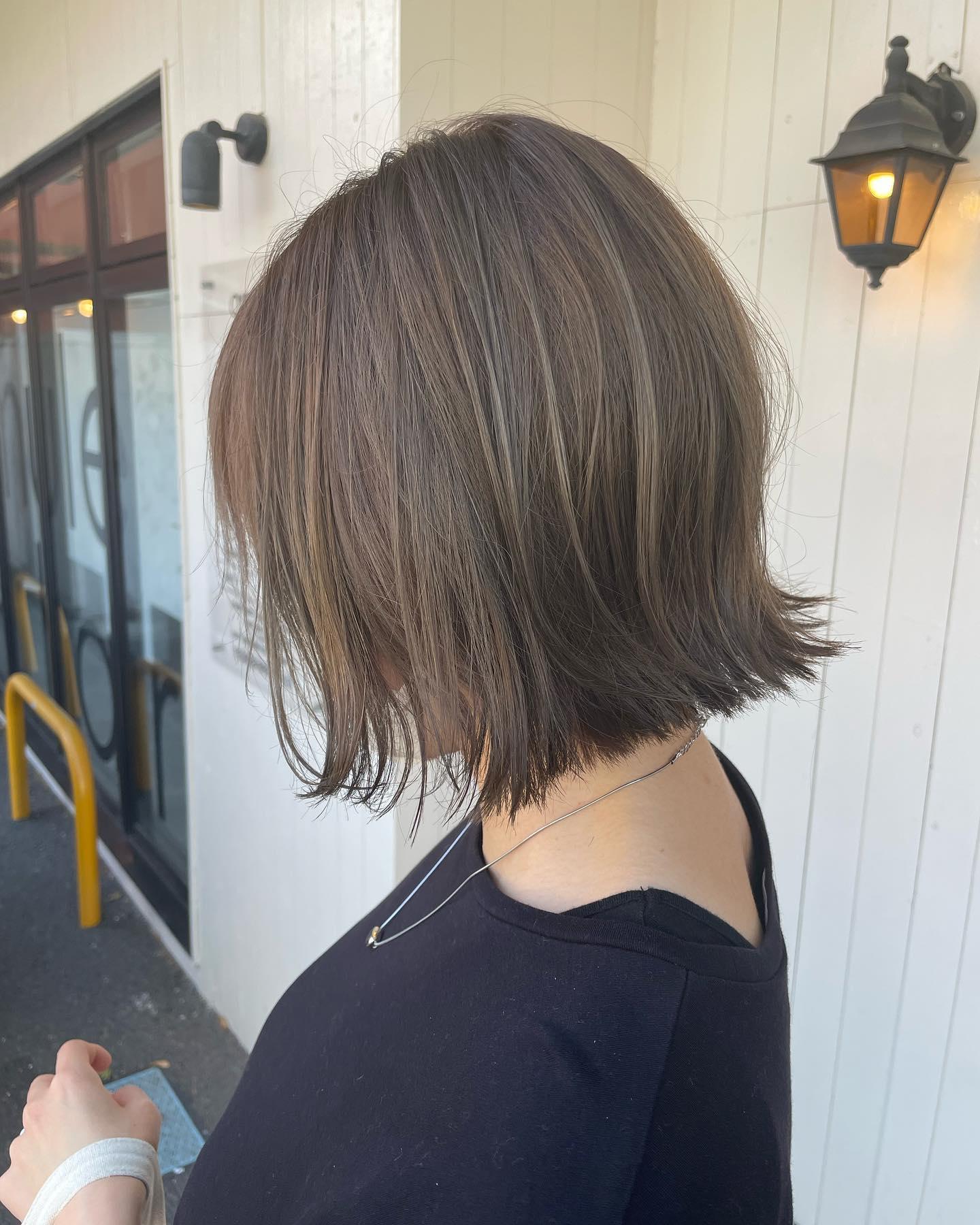 切りっぱなしブリーチなし長町長町美容室amulehairアムレヘアーグレージュ