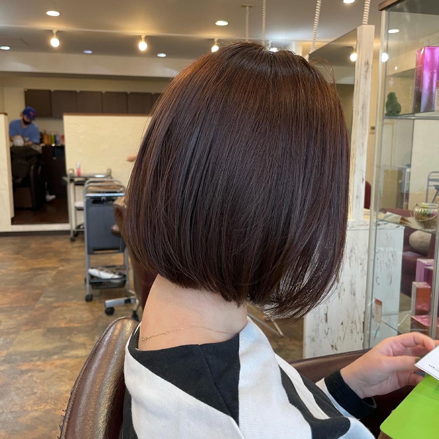 ラインを残した重めボブ セットも簡単、お手入れラクラクで大人気! オススメですー!