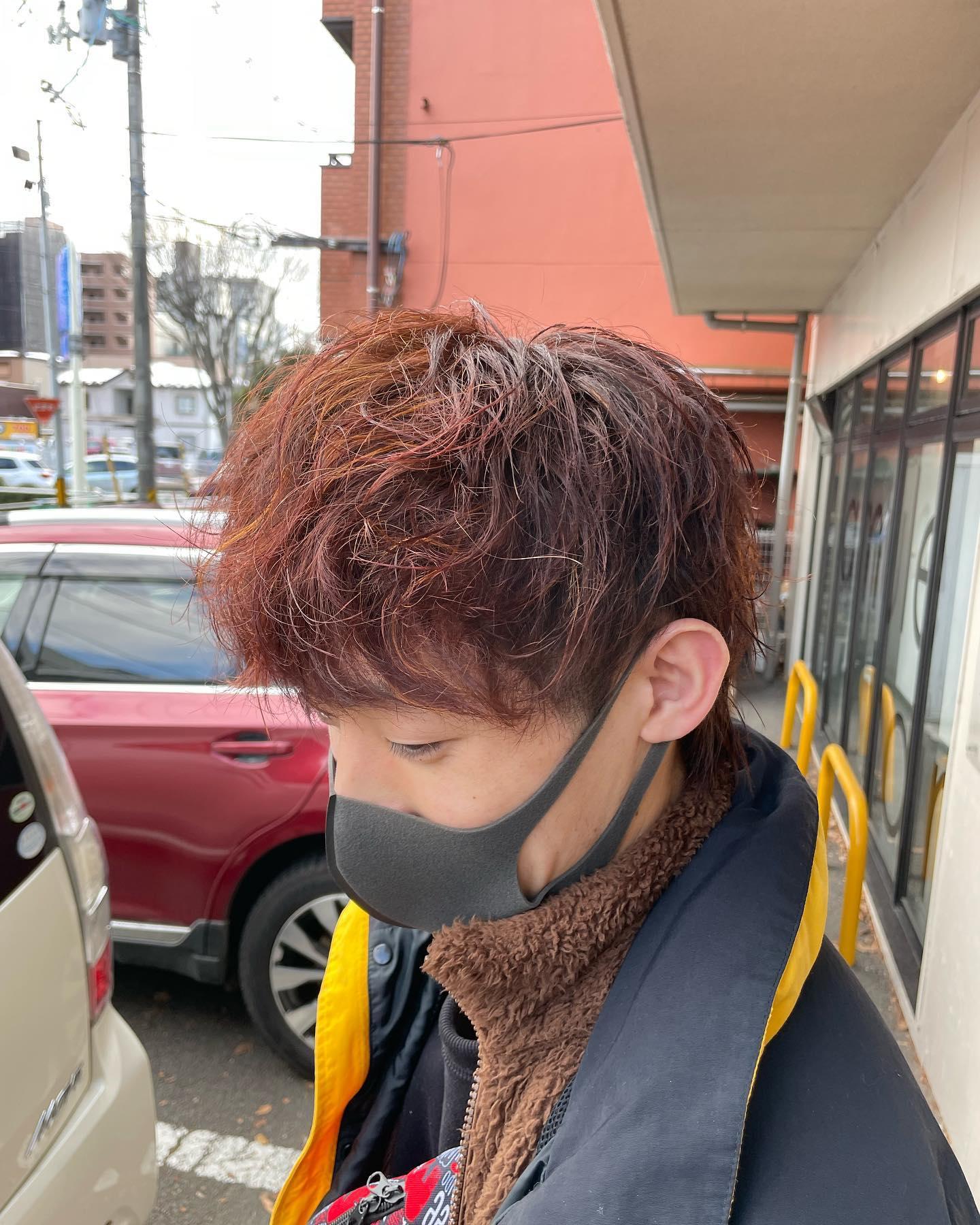 マッシュウルフ×レッド系カラーで個性的に @仙台 長町